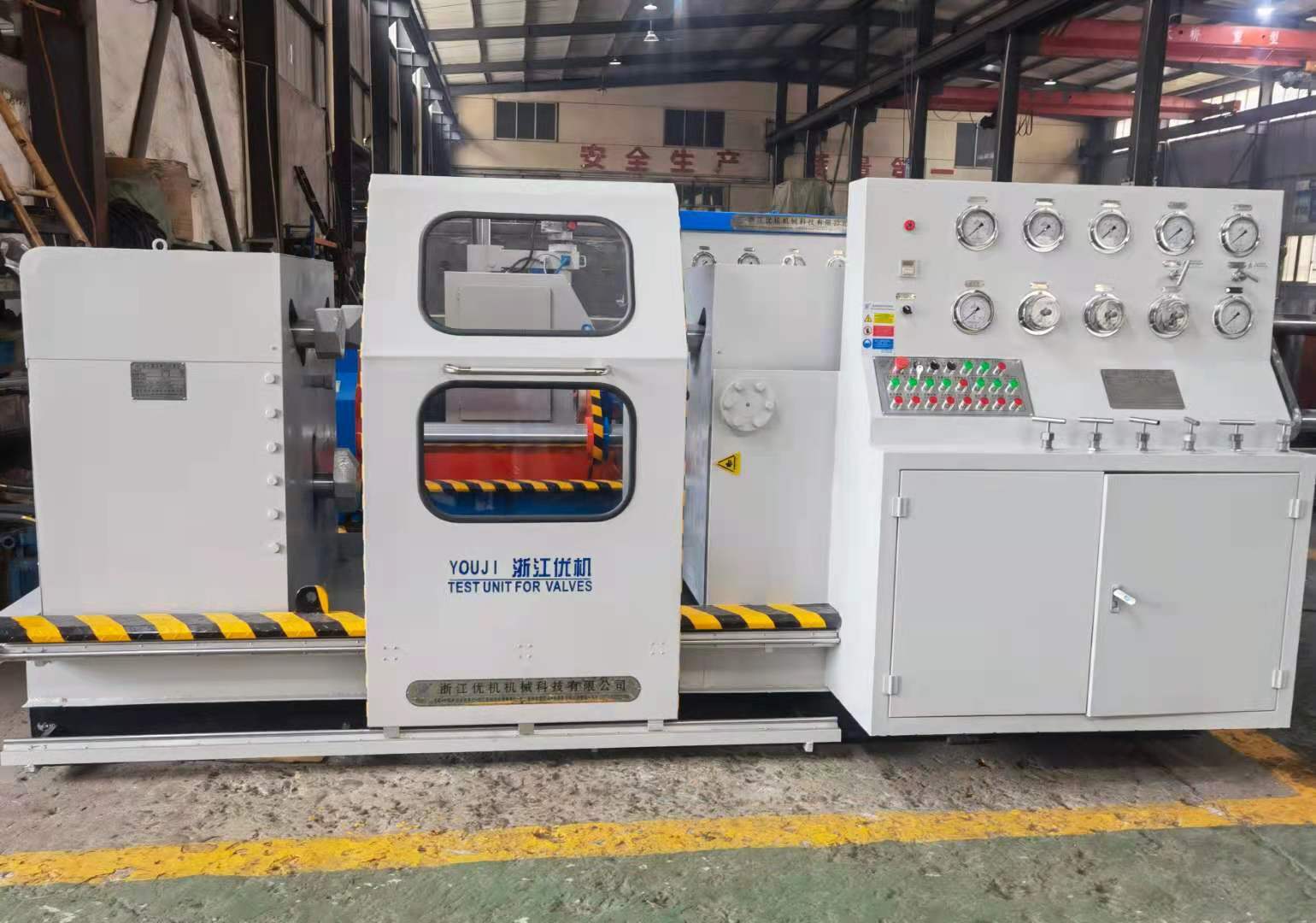本機集機電、液壓、試壓、液體介質(zhì)貯存循環(huán)使用于一體,具有功能完善、性能穩(wěn)定、自動化程度高等特點。廣泛用于公稱通徑DNl 5-1000mm的直通式法蘭及螺紋連接各類高、中、低壓閥門的強度、密封和泄漏量等各項性能測試。測試介質(zhì):水、氣、油。最高密封試驗壓力 32.0MPa,強度48 0MPa。